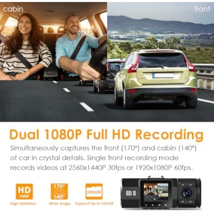 Dash Cam Front and Rear Camera, Dash Cam WiFi/APP Control Dashcam