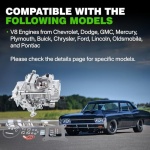 Compatible with: V8 Engines from Chevrolet, Dodge, GMC, Mercury, Plymouth, Buick, Chrysler, Ford, Lincoln, Oldsmobile, and Pontiac