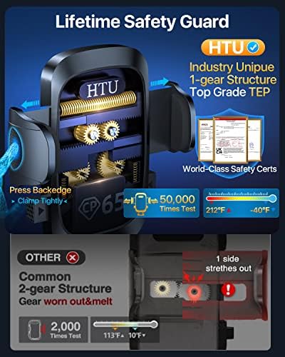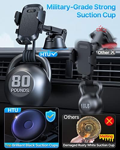 🎄🎄🎁【Unobstructed View】HTU upgraded car phone holder has the 360-degree ball joint and the adjustable telescopic arm, so that mobile phone within easy reach, convenient navigation, answering calls. Doesn’t block your view while driving. You can focus on driving, and the HTU mobile phone holder will do the rest for you.