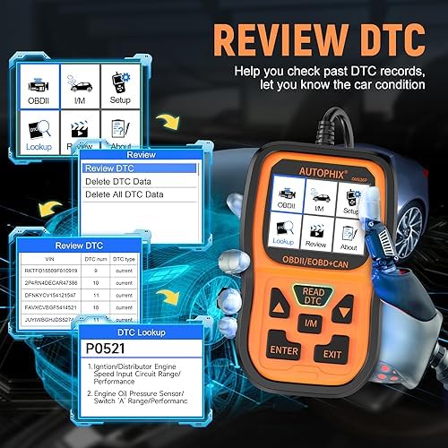 🚖➤【PROFESSIONAL CHECKING CAR ENGINE TOOL】The OM126P Enhanced OBDII scanner can read and erase the trouble codes that can cause e-mission problems in your vehicle in seconds, determine check engine light the MIL (check your car engine) and reset the monitor, build a DTC lookup library you can find the related code definitions to help you determine if your car needs repair, to save you time and money, and dramatically improve your car lifespan/performance.