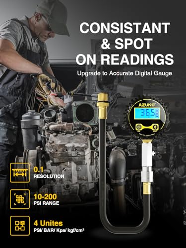 【Accurate Measurement】: Digital compression gauge has incredible 0.1 display resolution within 1% of the exact pressure ranged from 10-200 PSI.