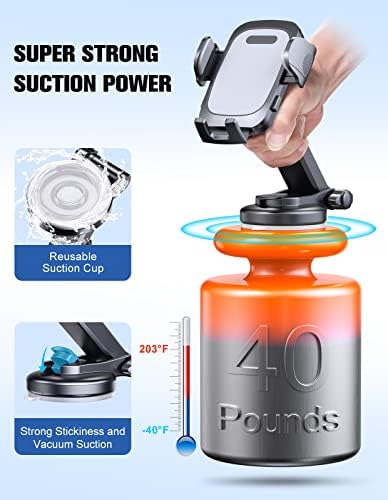 Car Phone Holder Mount, Long Arm Dashboard Windshield Phone Holder