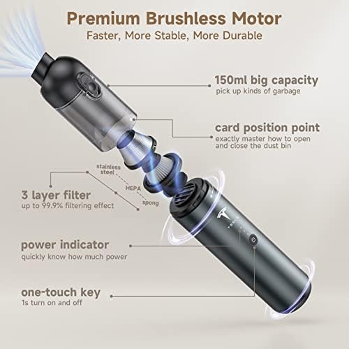 ✨【Two Powerful Mode】ELENAT for Tesla handheld vacuum cleaner adopts high-speed DC brushless motor, which supports switching to powerful mode. The suction power ranges from 8000Pa to 15000Pa. Tesla model 3 accessories help you easily remove dust, sand, paper scraps, hair, food residue .