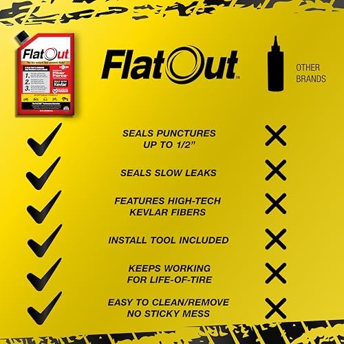 CONTAINS SUPER-STRONG KEVLAR: Containing super-strong Kevlar fibers FlatOut Tire Sealant Sportsman Formula is water-washable, non-toxic and latex/adhesive-free so there is never a sticky mess to clean up