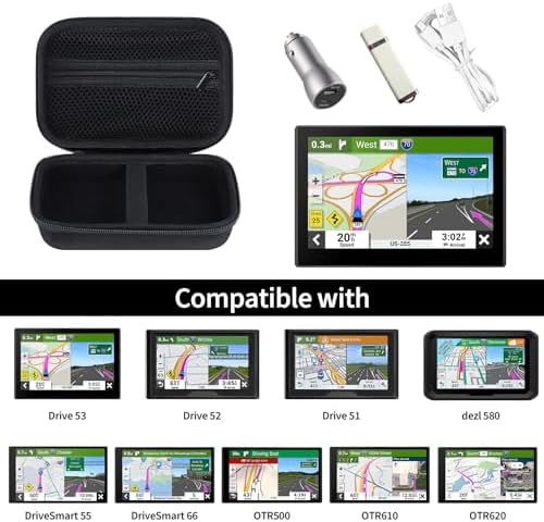 Convenient Design: Peyyargo GPS case is a specialized protective case designed to be compatible with GPS for car Drive 53 or Drive 52 or Drive 51 or DriveSmart 55 or DriveSmart 66 or Dezl 580 or Dezl OTR500 or dezl OTR610 or dezl OTR620 Car GPS Navigator, which can be used to store GPS navigation for car. The external eva material can prevent moisture, keep the interior dry and prevent the Garman GPS navigation from getting damaged due to moistureThe inside of case: Peyyargo GPS navigation for car Drive 53 or Drive 52 or Drive 51 storage case has a soft lining inside, lining inside made of velvet fabric, which can effectively protect the car GPS from scratches during bag movement or collision, reduce the risk of damage. This material also has the characteristic of dust prevention, which can effectively maintain the cleanliness and tidiness of the Peyyargo GPS Drive 53 or Drive 52 or Drive 51 storage caseThe external of case: The materials used in Peyyargo car GPS Drive 53 or Drive 52 with are nylon and EVA fabrics, which have wear-resistant characteristics. It’s hard shell design is shockproof and dustproof, protecting your GPS navigator from drops, scratches, bumps, splashes, and dust. Even when used in complex outdoor environments, the GPS case provide good protection car GPSDrive 53 or Drive 52 is not easily damagedSimple design: There is a mesh bag on the top of the Peyyargo GPS navigator Drive 53 or Drive 52 or Drive 51 case to place accessories such as data cables, come with an elastic cord to easily secure the machine. This convenient GPS navigator Dezl 580 or Dezl OTR500 case compatible with GPS navigation Drive 53 or Drive 52 or Drive 51 and the zipper design also protective the GPS navigation for car Drive 53 or Drive 52Portability for the case: The appearance of the GPS navigator Drive 53 or Drive 52 case is equipped with a portable handle, and the compact size of the case makes it more convenient for users to take Peyyargo GPS car DriveSmart Dezl 580 or Dezl OTR500 or Dezl OTR610 to any place. Notice! CASE ONLY! (GPS navigator is not included)