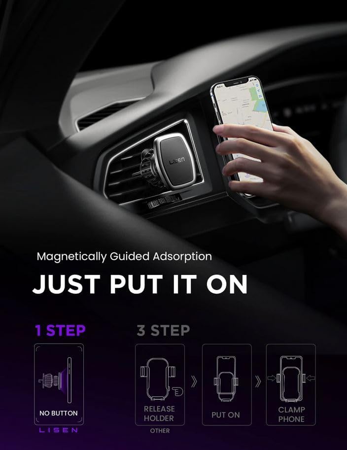 👍 CONVINCING QUALITY & UNIVERSAL COMPATIBILITY: LISEN car phone holder won SGS RoHS & SGS CP65 official certification and passed the magnetic force, telephone signal, hook stability and ingredient safety test. Quality is strictly controlled. The car holder holds most smartphones and mini tablets compatible with iPhone 15 14 13 12 11 pro max / XR / X / 8/7/6/5, Note 9 / Galaxy Note20 U, S21 S20 S10 S9 S8 S7 S6, iPad Air 2 / Mini 3 / Pro 9.7 and more.This product cannot work with MagSafe.