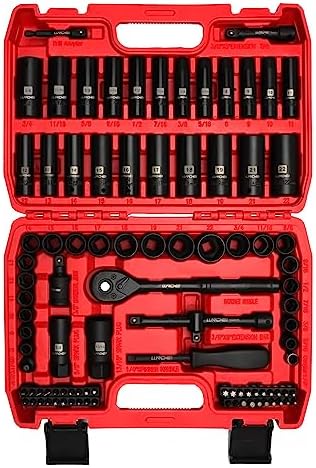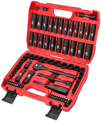✔HEAVY-DUTY 3/8″ IMPACT SOCKETS: Each black socket and socket extension in this master kit is constructed with high-impact drop-forged premium chrome vanadium steel. The sturdy and professional chrome vanadium construction allows you to take on any project, large or small.