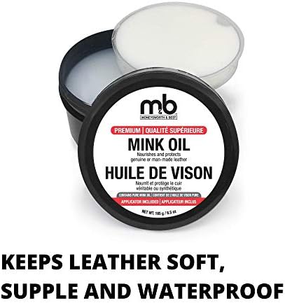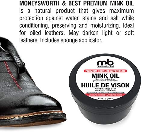 Moneysworth and Best Mink Oil contains a multi-refined oil of mink that penetrates deeply into leather, restoring natural oils while conditioning and waterproofing