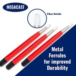 Red handle with fiberglass brush; metal ferrules for improved durability