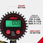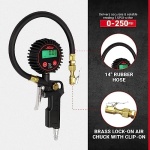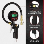 LCD Digital Pressure Gauge: Backlit display perfect for low light applications; auto-on when tire pressure is detected; auto-off after 15 seconds of inactivity to save battery life (2 AAA batteries required)