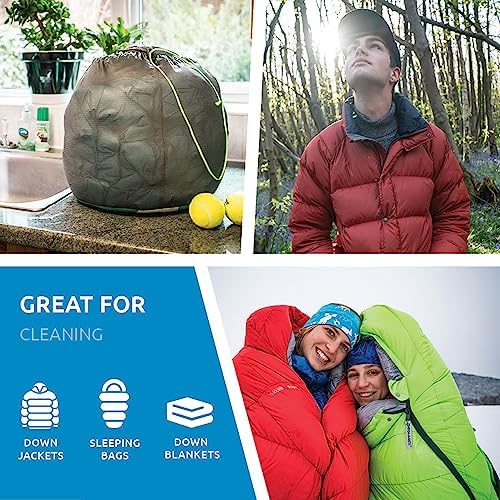 Safe for use on jackets, gear and bedding with down-fill, down blends, or water resistent down (such as Nikwax Hydrophobic Down)