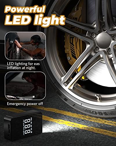 【More Than Just a Tire Inflator】The LED light makes it easy to inflate tires in the dark. There are three light modes to choose from, including white light, slow flashing red light, and fast flashing red light.