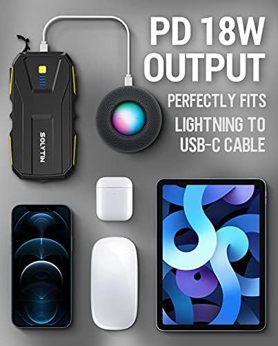 Improved Charging Port: With a PD18W bilateral Type-C port, S6 battery jump box can be recharged faster than the old-fashioned way and allows you to power up your devices with USB-C to C & USB-C to Lightning cables. Note: WALL CHARGER IS NOT INCLUDED. You can charge S6 car starter jumper power bank with all Mobile Phone Chargers.