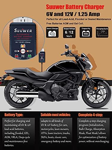 Be the first to review “Suuwer 1.25-Amp Trickle Battery Charger 6V/12V Fully-Automatic Smart Battery” Cancel reply