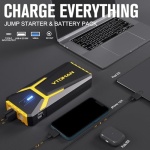 Charge Everything: Equipped with USB-C/PD15W, dual USB-A/Quick Charging outputs, and 15V/10A DC, this portable battery jumper starter also functions as a versatile battery charger power bank to charge tablets, phones, wearables, air compressors, car refrigerators, etc.