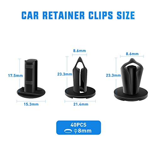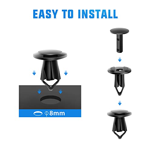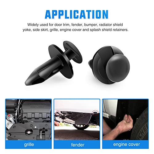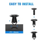 WIDE COMPATIBILITY – This is a universal car push retainer plastic clip for most auto parts with 8mm holes. Widely used for door trim, radiator shield yoke, fender, bumper, side skirt, grille, engine cover and splash shield retainers.